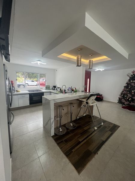 Cocina integral equipada, generosas encimeras, gabinetes, despensa y alacena.