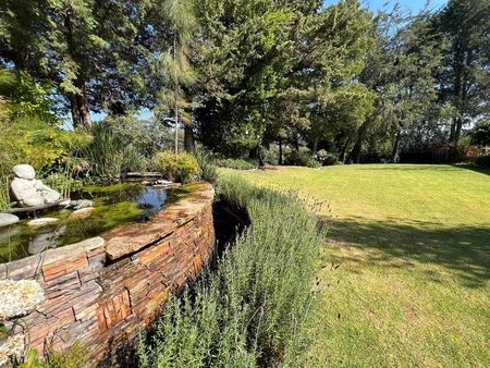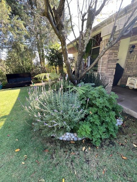 Meseta grande de césped con macizos