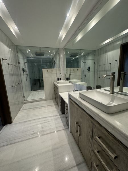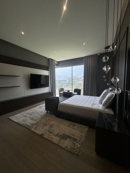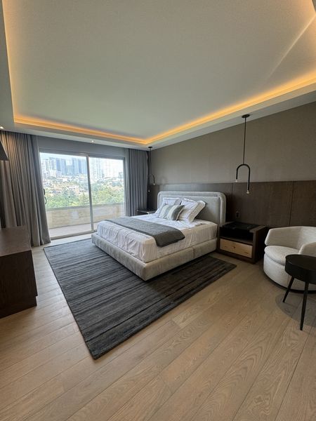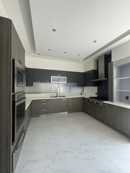 Tiene cuatro amplias recámaras cada una con su baño y vestidor, sala, comedor, cocina con antecomedor, family, cuarto de juegos, cine, bar y oficina.
