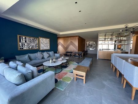Espectacular departamento colindando al campo de golf principal, con acabados de lujo, diseñado por reconocido arquitecto. Cuenta con tres recámaras cada una con su baño y vestidor, sala, comedor, estudio, family, cocina con antecomedor y áreas de servicio. Una terraza de más de 78 metros. La mejor casa club de bosque real, tiene alberca cubierta, spa, gym, cine, salón de adolescentes, salón de adultos, peluquería, canchas de paddle, cancha de fútbol, Salon de fiestas, área de spinning, de pilates, de box, etc
