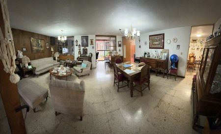 De la estancia hay salida al cuarto de juegos y usos múltiples. Tipo tasca española con bar mueble para la tele. Cuenta con puertas corredizas para salir a un patio central dónde se encuentra un departamento o recámara principal en planta baja, ideal para la abuela o visitas, en casa. Con su propio baño, Cocina de apoyo y armarios.