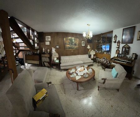 Es una casa desarrollada en dos plantas. Tiene un volumen que sobresale en su fachada principal de madera, elemento rústico artesanal con techos, envigados y teja que dan un sabor bohemio y artesanal. Al entrar, te recibe una estancia muy amplia Donde este salón cuenta con espacio para tu piano vertical, libreros. vitrinas, ambiente de sala principal para recibir. Comedor del tamaño que requieras con vista al frente