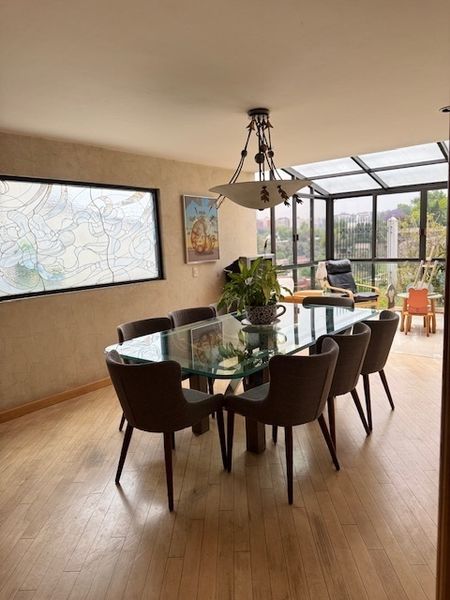 SALA Y COMEDOR CON UNA AMPLIA ESTANCIA Y TECHOS DE DOBLE ALTURA, DESAYUNADOR, CON TERRAZA , SE REMODELO SOLAMENTE EL AREA SOCIAL Y LA COCINA