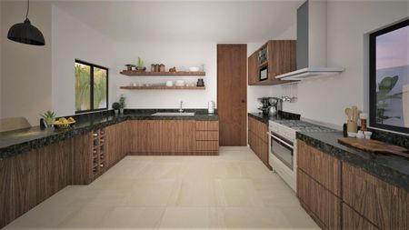 Casa de 1 Piso en Residencia Chacté, ubicada en Dzitya en la ciudad de Mérida, Yuc. Con un terreno de 560 m2, y construcción de 305 m2 con un frente de 12.33 m y fondo de 45.42 m.