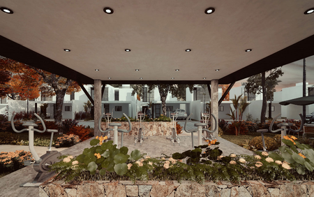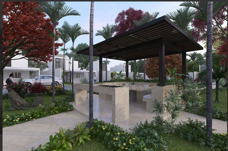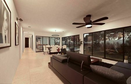 Se trata de casa de una sola planta, dentro de una privada ubicada en Conkal. Es un complejo que consta de 283 residencias de lujo, con acabados minimalistas, arquitectura de primer nivel y áreas comunes pensadas para satisfacer las necesidades de todos los miembros de la familia. La privada está rodeada de un entorno natural y verde.