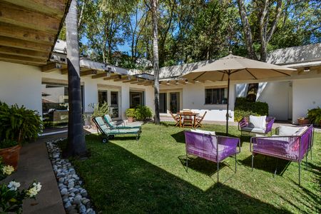 PRECIOSA CASA DE UNA SOLA PLANTA EN CONDOMINIO PROYECTO DEL ARQUITECTO ARTIGAS. Disfruta de la gran comodidad de vivir en un solo nivel, con grandes ventanales y vistas verdes, un entorno sumamente tranquilo y cálido. Proyecto muy bonito con jardín central que se disfruta desde todas las habitaciones de la casa. Cuenta con vestíbulo de acceso, family , sala y comedor con vista y salida al jardín, medio baño de visitas, 3 recámaras cada una con baño y vestidor (el de la principal muy grande), cocina, y área de servicio.