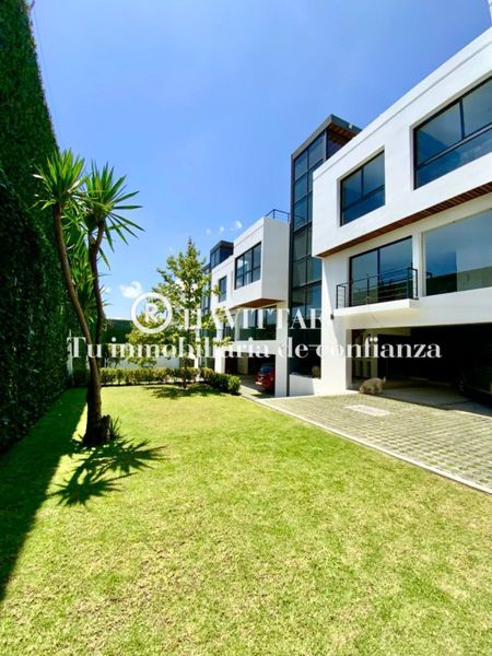 3 magnificas casas en condominio (solo 3 casas), con vigilancia 24/7, 3 niveles , sala, comedor, 1/2 baño, 3 recamaras cada una con su baño privado, roff con medio baño, zona de servicio con recamara de servicio, lavandería, bodega. Jardín privado de 67m2, estacionamiento techado para 3 coches. Excelentes acabados.