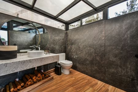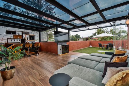 En el nivel sótano encontrarás estacionamiento para cinco autos, bodega de gran tamaño, cuarto de servicio, área de lavado, en este mismo nivel y ya hacia el acceso a la casa, encontrarás una funcional cava con capacidad para 100 botellas.