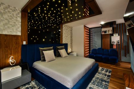 En el segundo nivel en tu área privada, encontrarás la recámara principal con vestidor y baño, segunda recámara o estudio, este último vestidor, con exquisito gusto, con muebles de diseñador, creados específicamente para el espacio, tercera recámara con vestidor y baño privado.