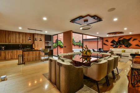 En el primer nivel se encuentra el área social, que seguro se volverá una de tus preferidas, diseñada para disfrutar con la familia o amigos, con una cocina abierta equipada con acabados de lujo, sala, comedor, todo el espacio con agradable luz natural, que surge del precioso patio interior con sala lounge y firepit, todo en un ambiente exclusivo y natural.