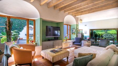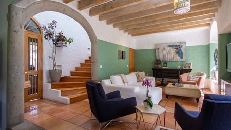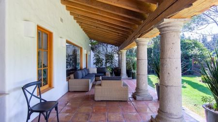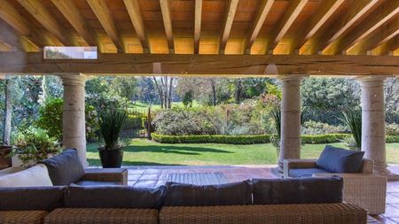 Sin duda, esta es una de las casas más bonitas de Lomas Country Club. Casa estilo colonial Mexicano, con acceso al campo de golf, y una orientación privilegiada que la mantiene templada e iluminada todo el año. Esta majestuosa residencia está rodeada de amplios jardines. Los materiales son de excelente calidad, e incluyen marcos de madera en las puertas y ventanas. En la planta baja se encuentra una amplia sala.con chimenea y salida a una terraza. A un costado se encuentra un despacho que también tiene luz natural. La cocina tiene muebles de un diseño y calidad exquisitos, y una isla central, todo con cubierta de granito. Family room con acceso al comedor, y una terraza con vista al campo de golf. En el jardín se encuentra un horno de leña. Tiene tres recámaras, todas con baño completo y vestidor. En el jardín se encuentra un amplio cuarto de juegos con bar y un balcón con vista al bosque. Garaje para 6 automóviles y bodega/taller. RCV494267