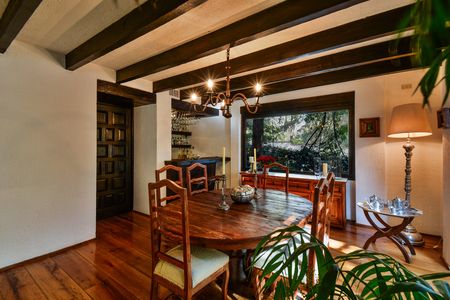 PRECIOSA CASA EN EXCLUSIVO FRACCIONAMIENTO, PROYECTO DEL ARQUITECTO ARTIGAS A UN COSTADO DE RANCHO SAN FRANCISCO. Disfruta de la comodidad de vivir en este gran espacio que te ofrece seguridad y confort. Cuenta con amplios e iluminados espacios, estancia con vistas totalmente arboladas, 3 recámaras con vestidor y baño cada una, gran cocina con antecomedor y salida a una agradable terraza y jardín con asador, sala de tv y estudio, cuarto de servicio y área de lavado , 2 estacionamientos techados. En áreas comunes cuenta con jardines, gimnasio, salón de eventos, estacionamiento de visitas y estricta vigilancia.