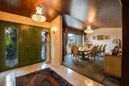 En planta baja, cuenta con 4 recámaras, cada una con baño y vestidor, gran family, antecomedor, medio baño, sala y comedor. En planta semisótano, un estudio, cava, bar, sala, y una cocina industrial.