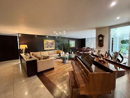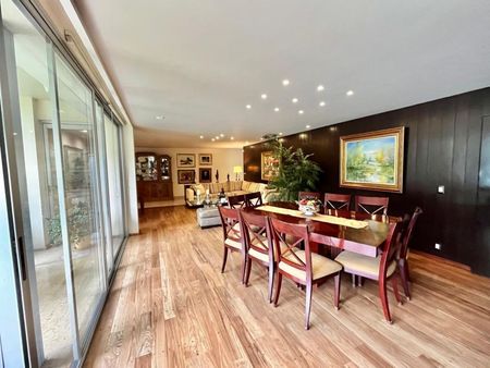 En un piso. espacios amplios y muy iluminada por grandes ventanales corredizos.