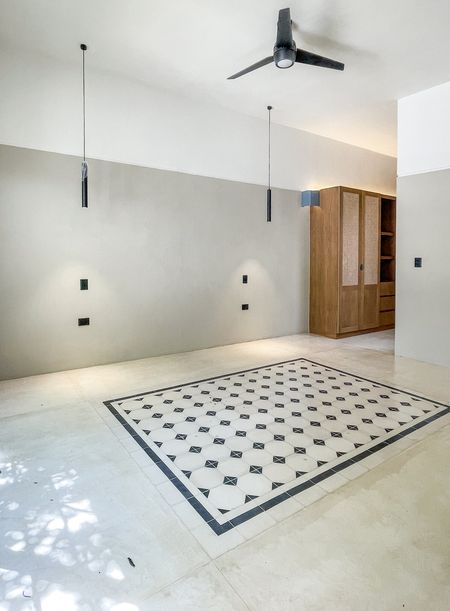 - Pisos de cemento pulido con tapetes de piso de pasta