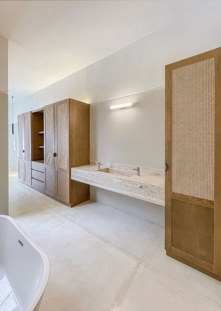 - Closets en listón de encino con detalles de tejido artesanal ojo de perdiz en fibras