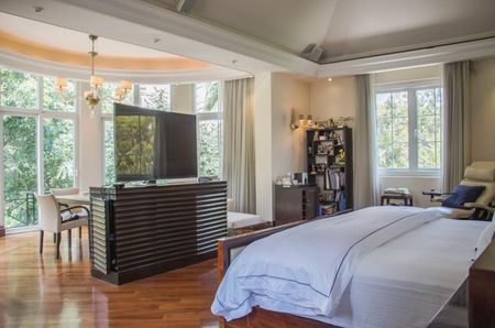 5 RECAMARAS DOS DE ELLAS CON TAPANCO, OFICINA , DOS MEDIOS BAÑOS , DOS CUARTOS DE SERVICIO, CUARTO DE CHOFERES, 2 BODEGAS , 6 ESTACIONAMIENTOS, ALBERCA PRIVADA, JARDIN , GYM,SISTEMA HIDRAULICO, CALEFACCION , AIRE ACONDICIONADO, SISTEMA INTELIGENTE .