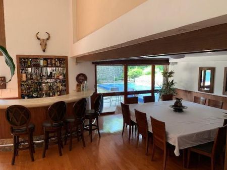 1090 m2 de terreno y 870 m2 de construcción. Espacios amplios, muy iluminados, recámaras con salidas al jardín y a la alberca, terraza con vista a la CDMX.
