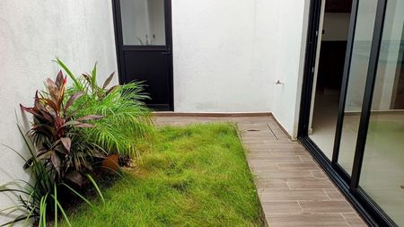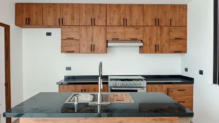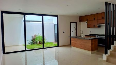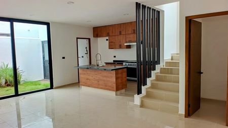 La casa cuenta con 3 recamaras cada una con baño propio. Cocina integral con barra desayunadora , patio de servicio.