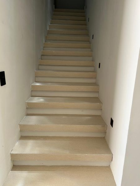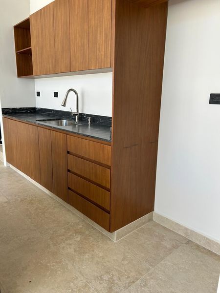 Interiores con muros lisos en masilla fina, un lienzo perfecto para tu decoración. Pisos de porcelanato de GRAN FORMATO, sinónimo de sofisticación y durabilidad.