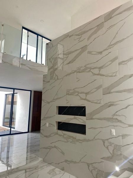 - Piso ceramico tipo marmol de alto brillo en formato 60 x 120 cm