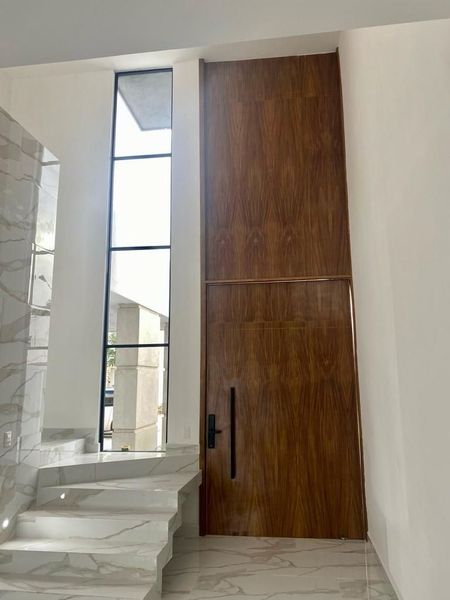 - Puerta principal en parota de piso a techo a doble altura con cerradura electrica.