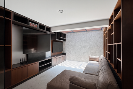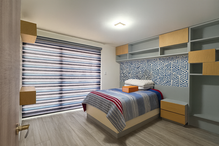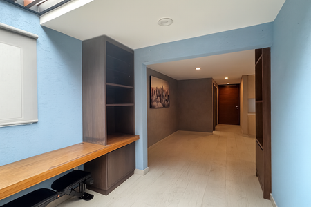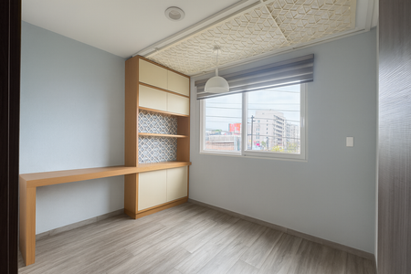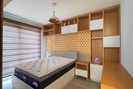 Las recamaras y la sala cuentan con mobiliario como escritorios, libreros en madera hechos a la medida.