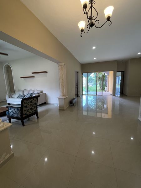 Pasillo de servicio directo a jardín, piscina, cuarto de lavado y área de maquinas.