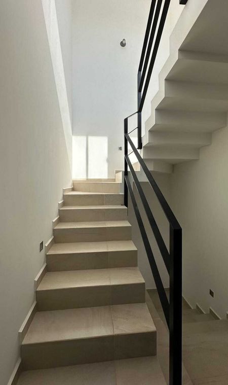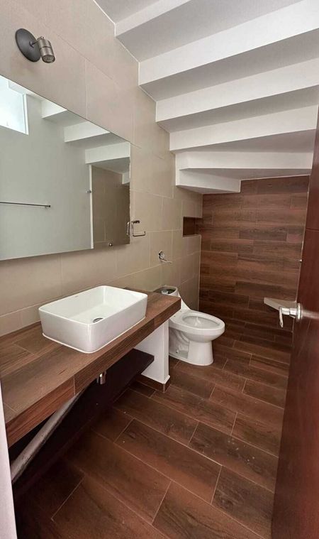 Planta baja: sala comedor, cocina, lavado, estudio y estacionamiento para dos carros. Baño completo