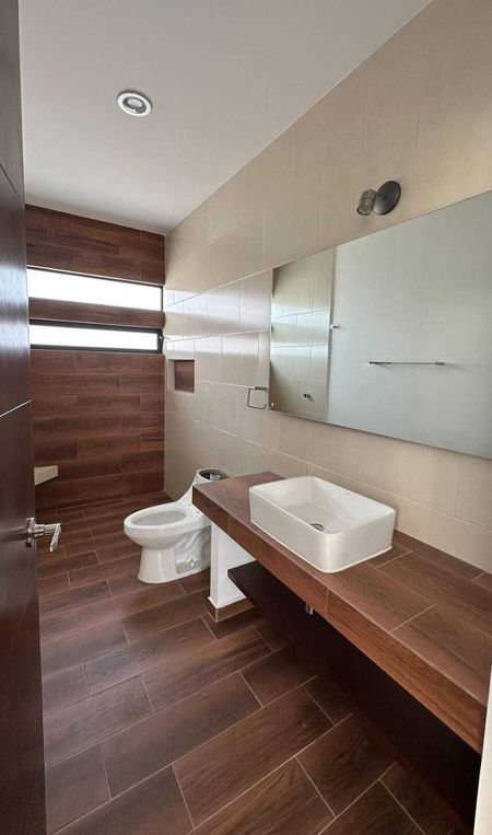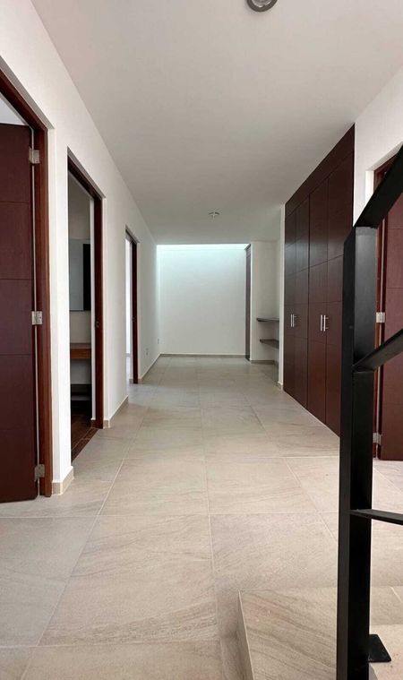Planta alta: tres recámaras, la principal con vestidor y baño, un baño compartido, sala de TV y azotea