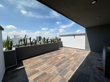 Terraza frontal con asador y vista hacia Querétaro con jardinera.