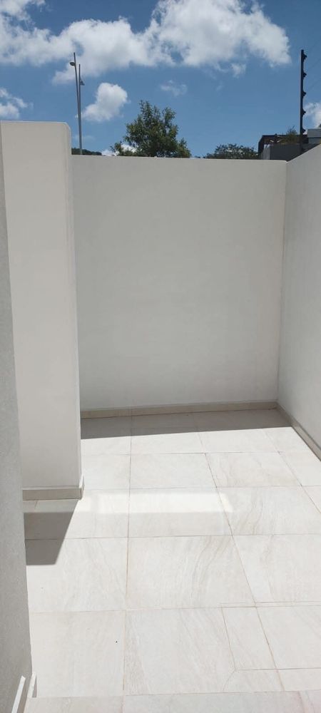 Planta baja: sala comedor, cocina, lavado, estudio o cuarta recámara, baño completo, cochera para dos carros
