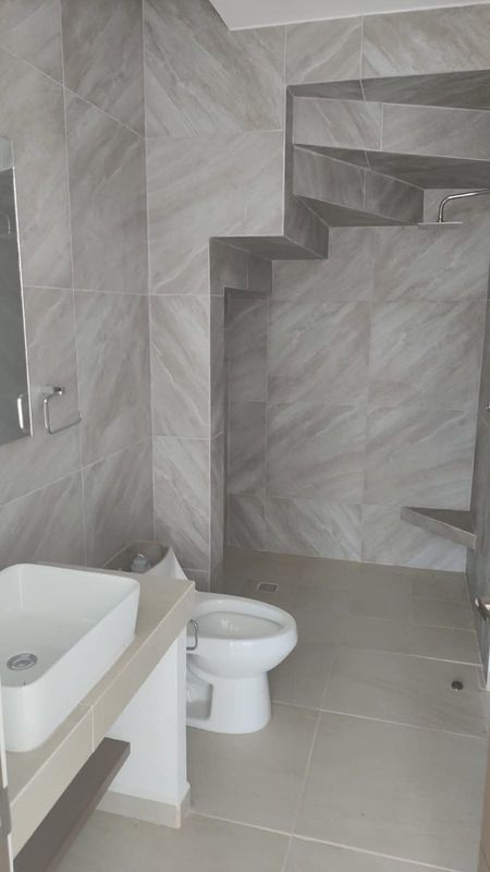 Planta alta: recámara principal con vestidor y baño completo, las otras dos tienen baño propio, sala de TV