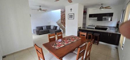 La propiedad destaca por su cocina integral con acabados de alta calidad, una sala y comedor espaciosos, así como un jardín trasero amplio, perfecto para disfrutar reuniones al aire libre. Además, dispone de un cuarto de servicio completo y techado, brindando mayor comodidad y funcionalidad.