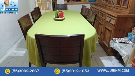 Cuenta con : Sala, Comedor, Cocina, 5 recámaras, un Baño Completo, un Medio Baño, Bodega, Árboles Frutales de Limón y Pera, Gas Estacionario, Boiler, Lavadero, Cisterna (3x3), tinaco, un Pequeño Jardín y estacionamiento para 3 carros.
