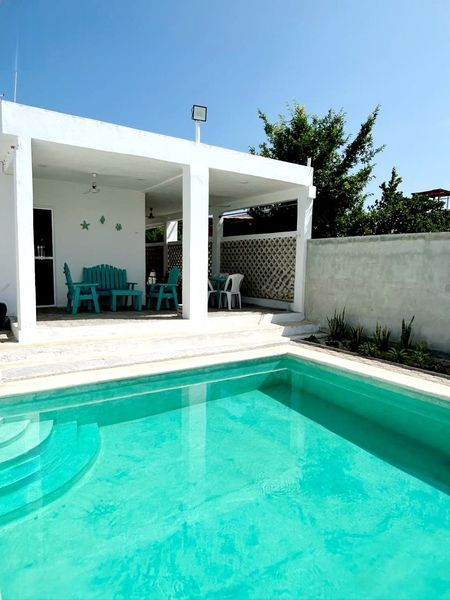 Linda y cómoda casa recién construida ubicada en el puerto de Chelem, en 4a fila a escasos 300 metros de la playa.