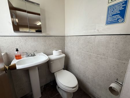 El primer nivel cuenta con un área abierta de trabajo con dos medios baños y un privado sin baño.