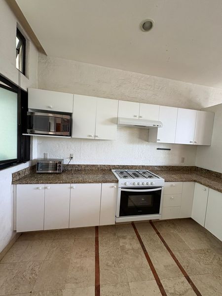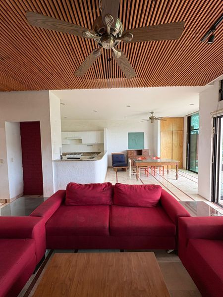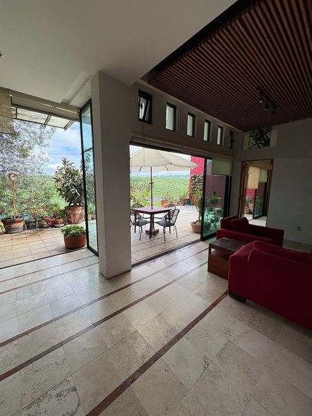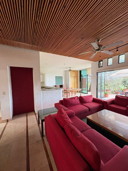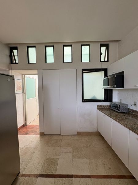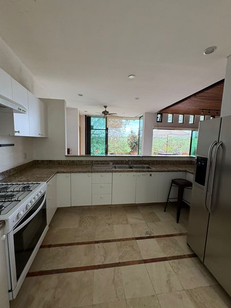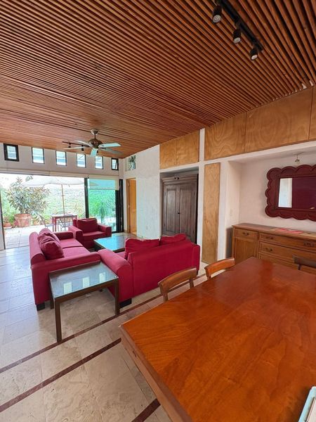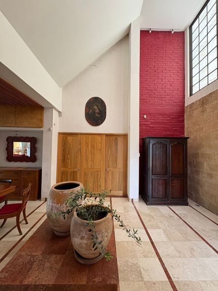 Cuenta con garage para 4 autos, 2 bodegas, amplio recibidor a doble altura con excelente iluminación, sala, comedor, cocina abierta, amplio cuarto de lavado, espacio abierto para estudio, recámara principal con vestidor y baño con tina. Recámara secundaria con clóset y baño completo que da servicio al área social.
