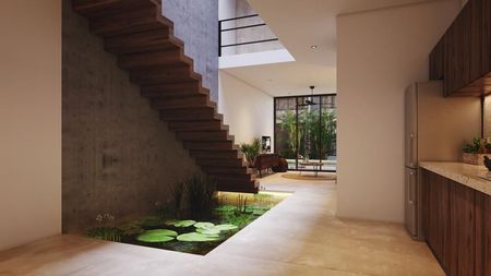 • Acceso a la sala con jardín acuático, entrada directa al área común
