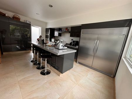 • Cocina equipada con horno Wolf, estufa Monogram, e isla central