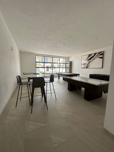 Alberca: Disfruta de una refrescante alberca común, ideal para relajarte y disfrutar en los días soleados, Sala de cine, salón de usos múltiples y gimnasio.