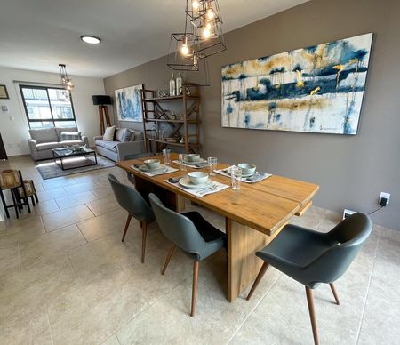 ¡Descubre tu nuevo hogar en El Refugio, Querétaro! Torre de Piedra Jacarandas, diseñado por Artigas Arquitectos, ofrece el prototipo Ceiba, un departamento de 84m² perfectamente distribuido. Disfruta de una sala, comedor, cocina equipada, área de lavado, recámara principal con clóset y baño completo, recámara secundaria con clóset, baño completo, balcón y dos cajones de estacionamiento.