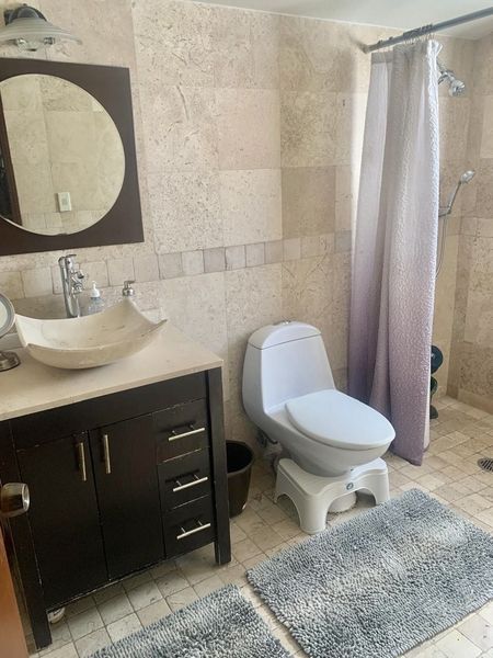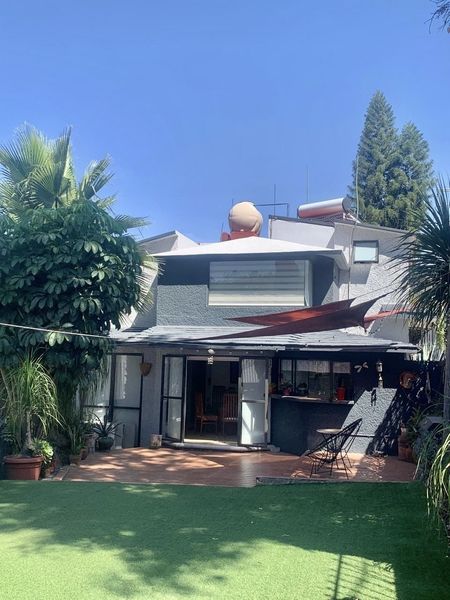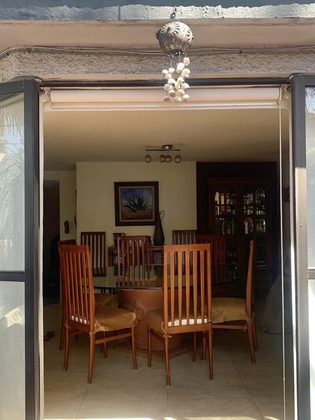 Tres recamaras, la principal con baño y vestidor, sala y comedor con salida a la terraza y jardín con asador