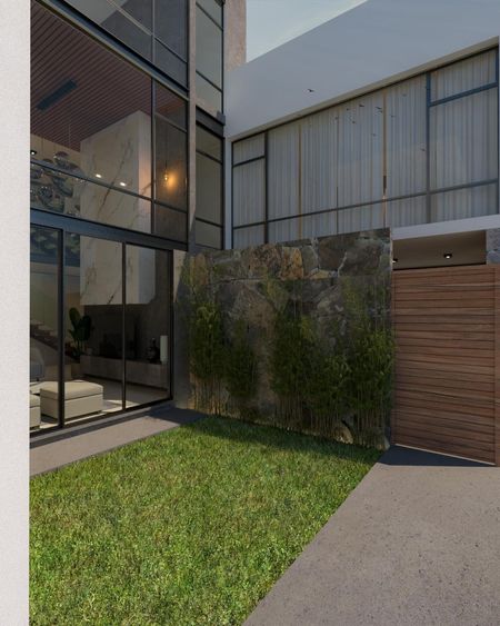 Jardín Trasero con y ventanas tipo corredizas de apertura completa para comunicar Sala Comedor a patio exterior.