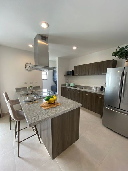 -Piso porcelánico rectificado en el interior de toda la casa (sala, comedor, cocina, baños, vestidor, estancia, escalera, recamaras y pasillos interiores). El piso puede tener variación en la tonalidad.