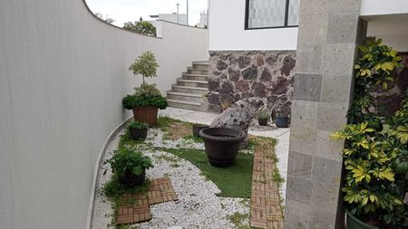 Se ubica en esquina, por lo que permite que varias zonas de la casa y sus 2 Roofgardens, uno abierto y otro techado como area social, tengan excelentes vistas panorámicas a los Valles de Amazcala. Además de contar con Jardín y un Sótano muy amplio.