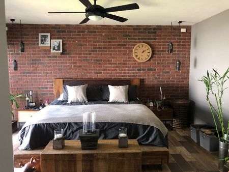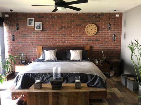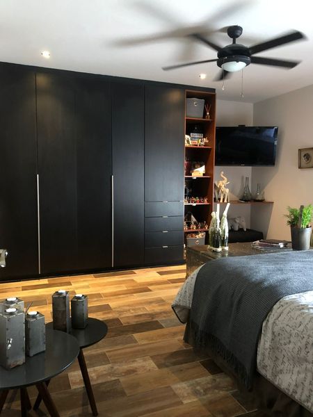 • Ventanas de piso a techo con cancelería negra, persianas y blackout en recámaras.