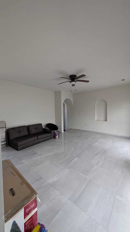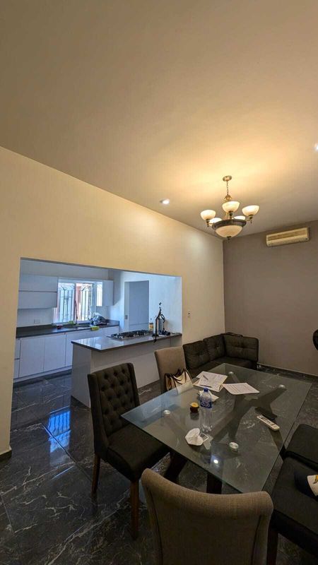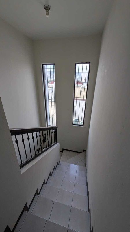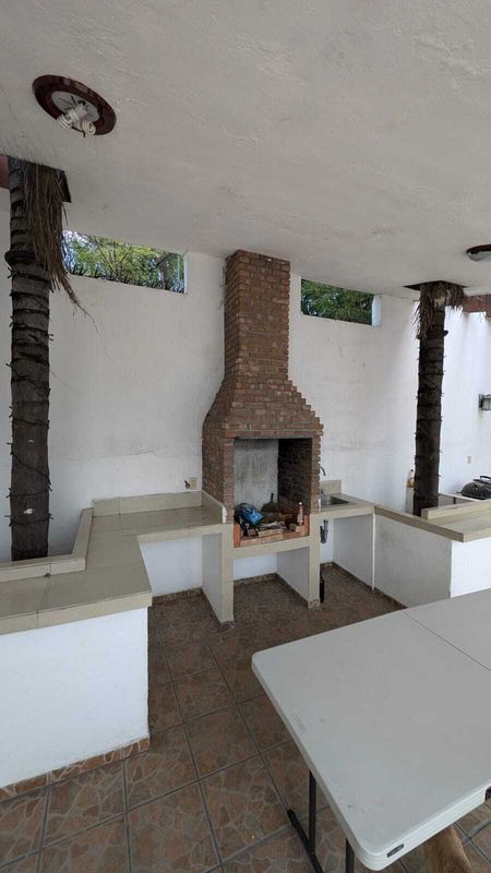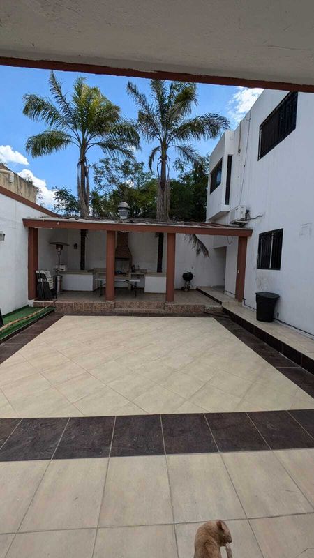 Amplia casa de 4 pisos con 5 recámaras, 4 baños completos, 2 medios baños y cochera con reja para 2 autos. Incluye cocina recién renovada, lavandería techada, cuarto de servicio, pasillo lateral y un amplio patio con asador.