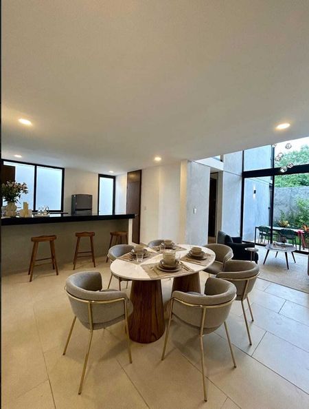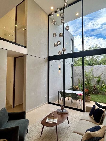 Magnífica privada arbolada de solo 28 casas, ubicada a 400 metros de periférico en Cholul, casas con diseño moderno y vanguardista.