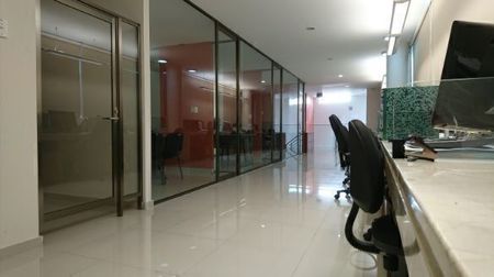 Salón de Capacitación; 9 Privados, 3 salas de juntas., Privado Lounge VIP, Roof Garden., Jardín Corporativo, 2 áreas de Site., Comedor, Área de vigilancia. 4 Bodegas para Archivos, 1 Bodega para herramientas y equipo., 13 Baños. Todas las áreas con personal están equipadas con aire acondicionado